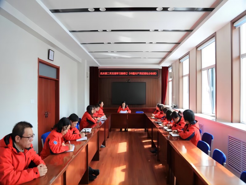 2024年2月22日,机关第二党支部组织党员集中学习新修订的《中国共产党纪律处分条例》,会议由支部书记李彩红主持,全体党员参加。