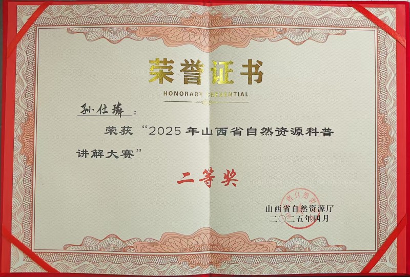 我公司职工孙仕璘代表山西省地质勘查局参赛,以《地热赋新篇:地球深处的绿色诗行》为题,用诗意且富有感染力的语言,深入浅出地为观众讲述了地热资源的分层利用及地热开发愿景,分享了我公司在同昌低碳园区等地热勘察开发项目中取得的技术突破和积累的宝贵经验。在随机命题讲解环节,孙仕璘凭借丰富的综合知识储备和出色的临场应变能力,赢得了评委和观众的一致好评,最终荣获2025年山西省自然资源科普讲解大赛二等奖。