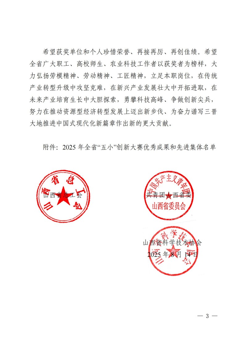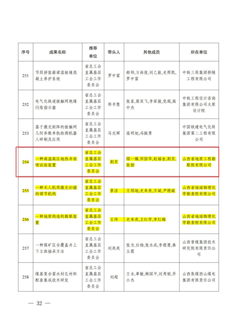 近日,山西省总工会公布了2025年全省“五小”创新大赛优秀成果和先进集体名单。问鼎网页版登录入口自主研发的发明专利“一种高温高压地热井放喷实验装置”,荣获创新大赛二等奖。